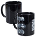 - Black mug featuring the Batman logos, which transfers to images of the Batmobile when hot .
