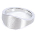 Details- Stainless steel oval design ring in a brushed satin finish .