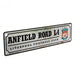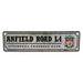 • Anfield road sign, the home of Liverpool FC on a rustic look background.