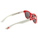 Details- Red junior sunglasses with white arms.
